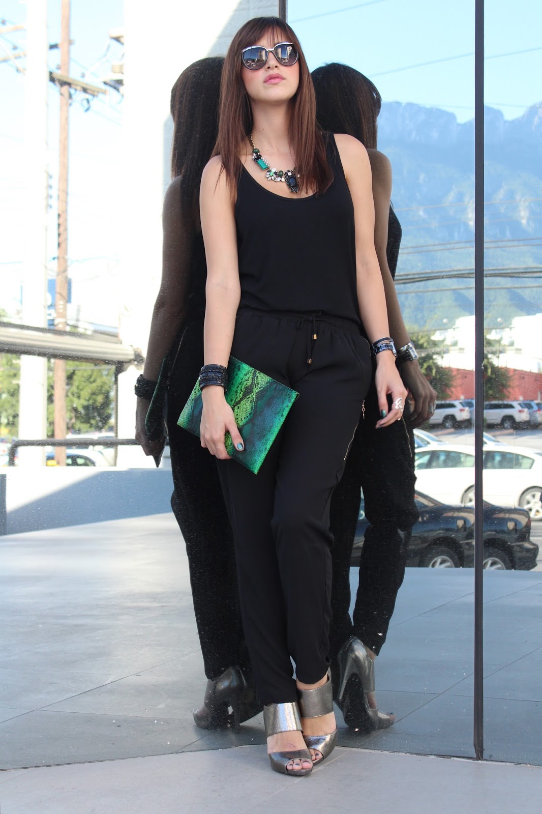 T-shirt dress - Sfera / Cobalt leather skirt - H&M / Clear clutch - Call us whatever / Chunky Flower necklace - Amy de petatiux / White watch - Michael Kors / Silver rings - Uno de 50 & Chula / Silver studded sandals - Zara.
